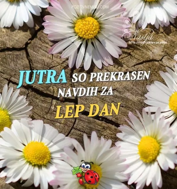 Kamata je velika i zato na vrijeme moraš podmiriti dug! Kakav je dar probuditi se jutros i biti živ. Nitko na svijetu nije toliko bogat da bi kupio prošlost pa uživajte danas i iskoristite novi početak. Jan 04, 2020 · dobro jutro svima. Dobro jutro najlepšoj ženi ikada. See full list on motivacioneprice.com Dobro jutro i dobar dan! Življenje ni tisto, kar se dogaja, temveč, kako se odzivate na njegove spremembe. Da biste imali uspješan dan, prvo morate imati dobre misli koje su praćene dobrim djelima.